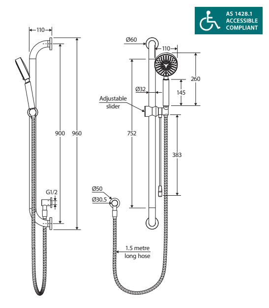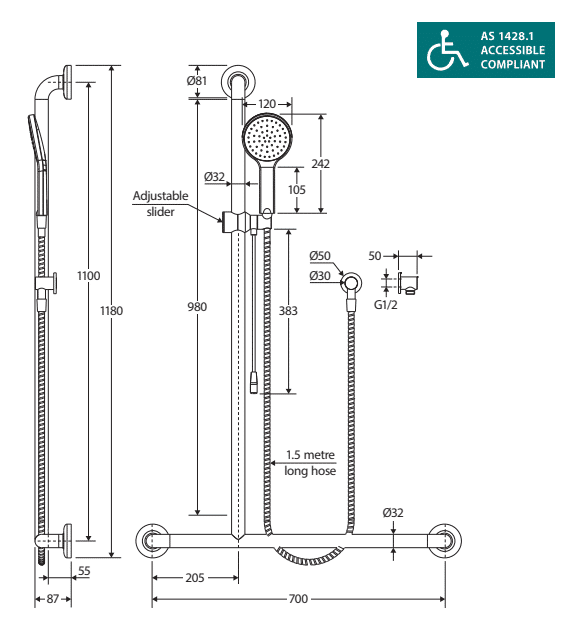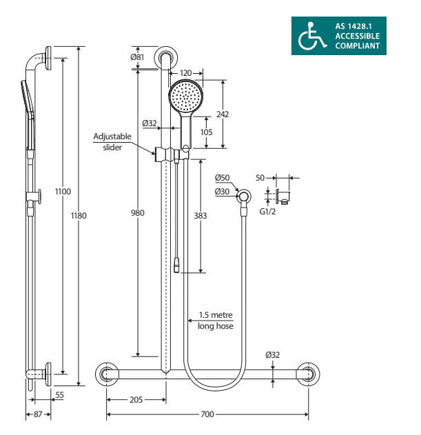 Our range of Care showers are suitable for independent living applications and are compliant with AS1428.1 for use in commercial bathrooms.