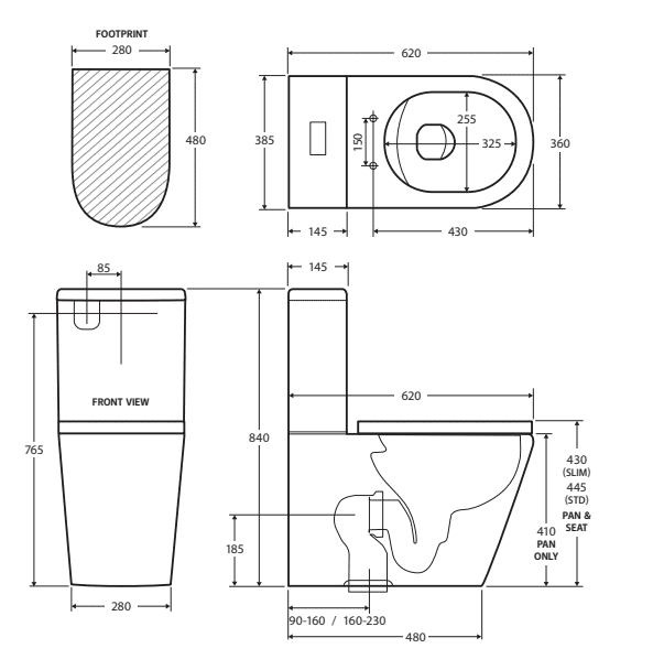 | Options | S-Trap 90-160, S-Trap 160-230, P-Trap, P Trap – Thin Seat, S-Trap 90-160, Thin Seat |
