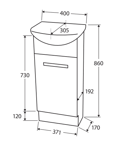 400 -Width: 400 mm x Depth: 305 mm x Height: 860 mm.