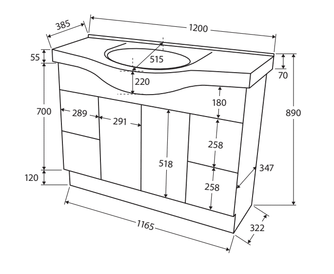1200 -Width: 1200 mm x Depth: 515 mm x Height: 890 mm