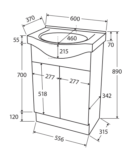 600 -Width: 600 mm x Depth: 460 mm x Height: 890 mm.