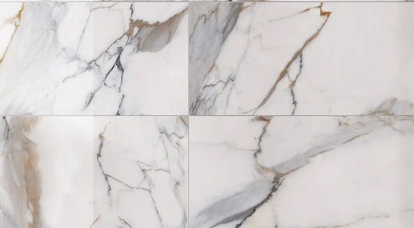 Calacatta Gold embodies the appeal and refinement of natural marble, paired with the convenience of porcelain. The vein patterns are strong, in mineral and earthy colours: the result is a tile with great visual impact.