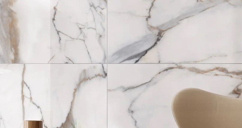 Calacatta Gold embodies the appeal and refinement of natural marble, paired with the convenience of porcelain. The vein patterns are strong, in mineral and earthy colours: the result is a tile with great visual impact.