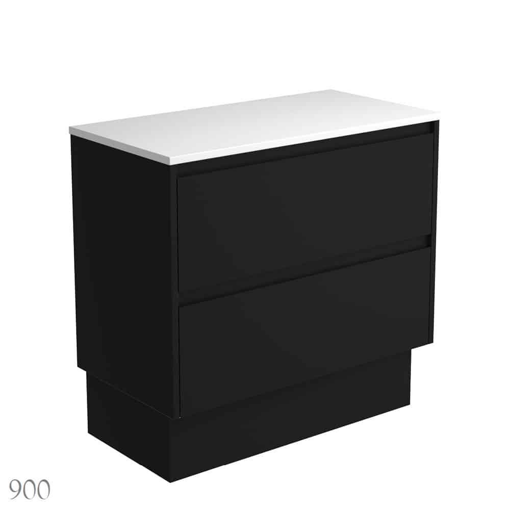 AMATO All Drawer Satin Black Cabinet On Kickboard.