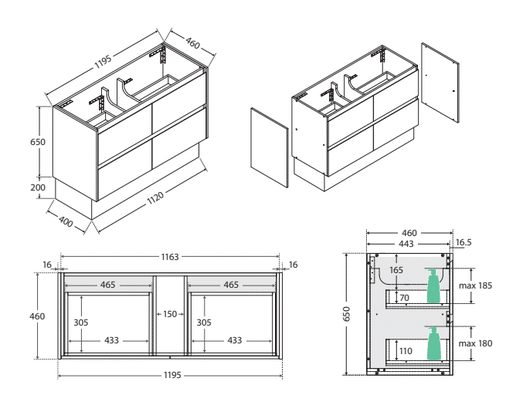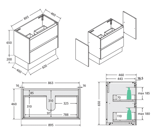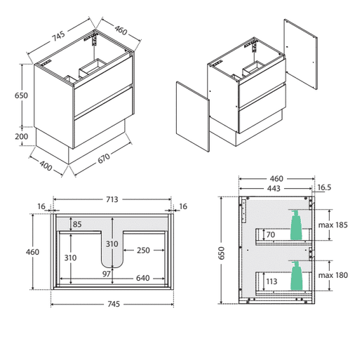 | Options | 750×460 2 Drawer, 900×460 2 Drawer, 1200×260 4 Drawer |