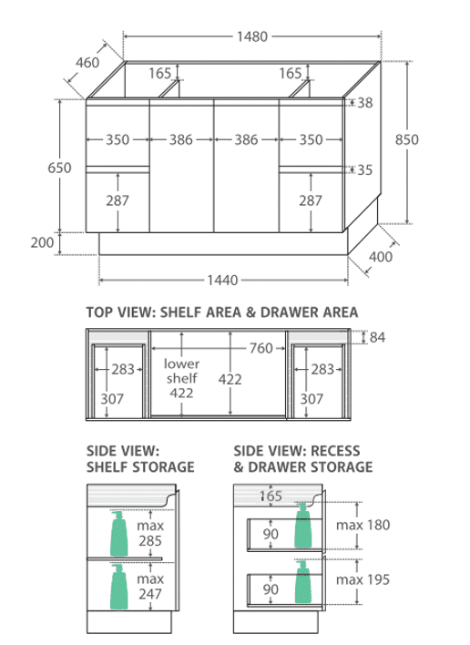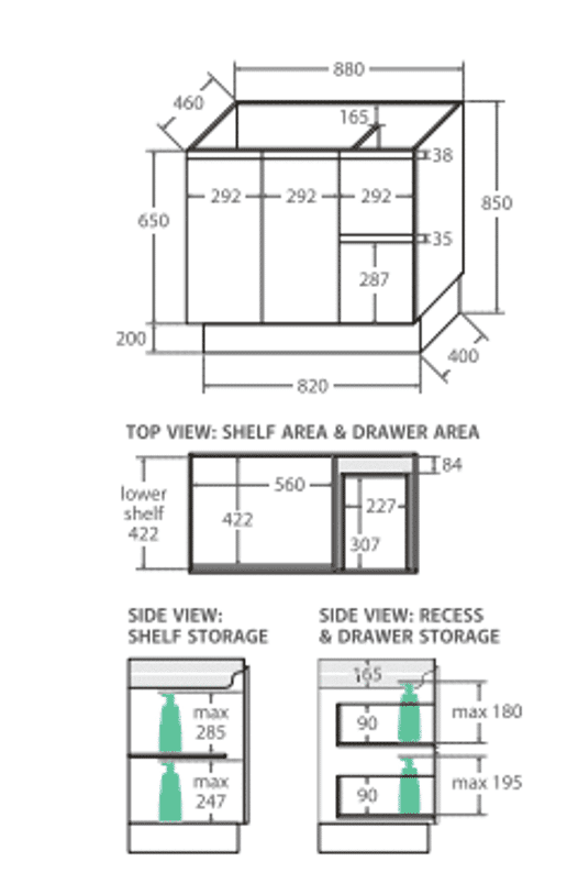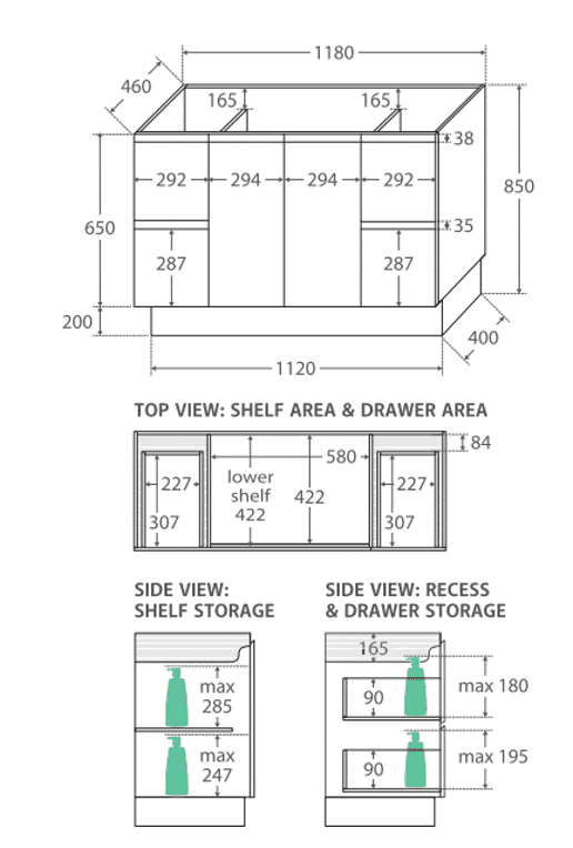 | Options | 600×460, 750×460 Left Hand Drawers, 750×460 Right Hand Drawers, 900×460 Left Hand Drawers, 900×460 Right Hand Drawers, 1200×460, 1500×460 |