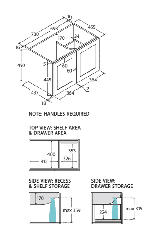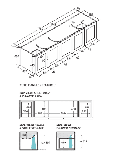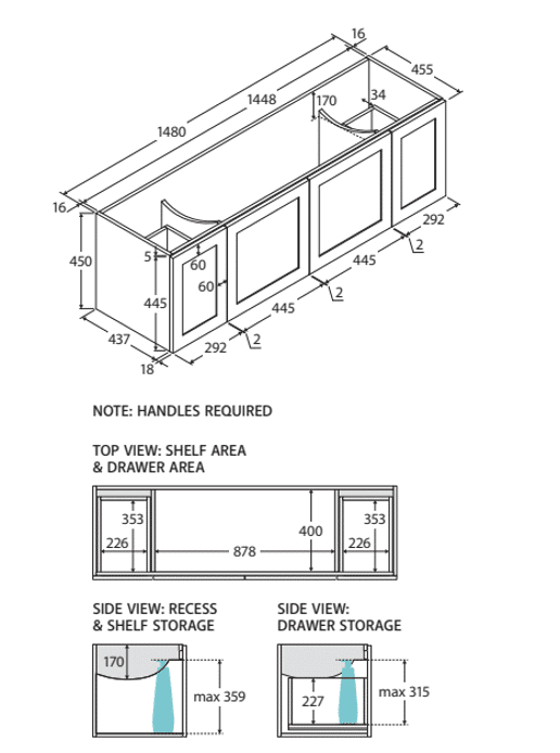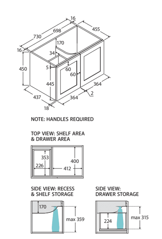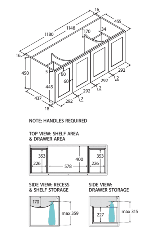 | Options | 600×460, 750×460 Left Hand Drawer, 750×460 Right Hand Drawer, 900×460 Left Hand Drawer, 900×460 Right Hand Drawer, 1200×460, 1500×460, 1800×460 |