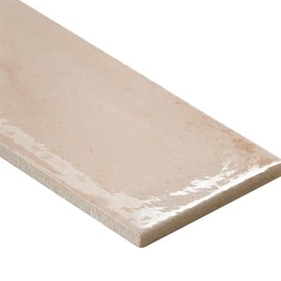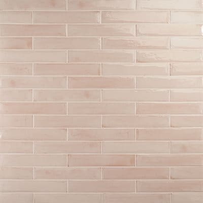 Small flakes of marble, fragments and glass find their elegant geometric composition in space, flanked by a brick format with understated pastel tones.