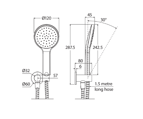 - 1.5 metre stainless steel hose
