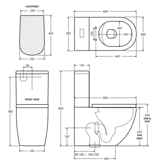 WELS 4 Star rated, 4.6L/3L (3.3L average flush)