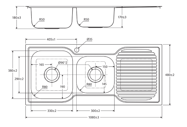 Outer Dimensions: 1080 x 480 x 180 mm